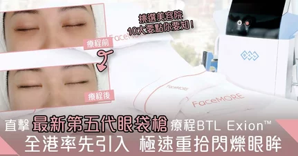 要打造緊緻電眼效果更快更有效!最新一代眼袋槍療程更升級功效,額外增加自生透明質酸+224%,全力截擊眼袋、黑眼圈、下垂眼皮及眼周細紋等眼部顯老問題,令不少愛美人士趨之若鶩!不過,要安全安心進行療程,更重要的是懂得揀選有信譽的美容療程中心。因此,今次不單止為大家介紹這個人氣第五代眼袋槍療程BTL Exion™,更會教大家揀選美容院時要注意的事項。事不宜遲,立即爬文!