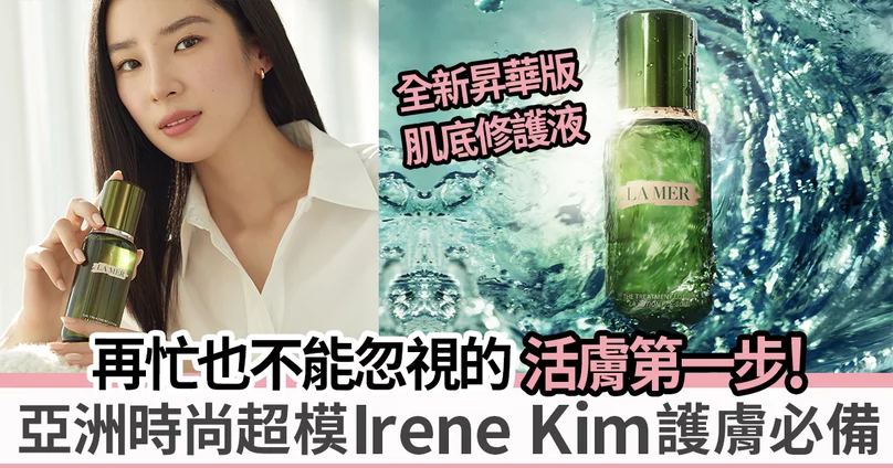 作為各大時裝秀及雜誌的寵兒,Irene 時常因繁忙的工作日程而長時間戴妝。為預防細紋及粉刺暗粒等敏感及初熟肌問題,Irene 堅持每天使用La Mer肌底修護液(又名海洋精華水),在護膚第一步為肌膚注入新生命,即時喚醒年輕修復力量,讓肌膚回復健康緊緻及彈滑光澤,預防肌膚初老跡象!