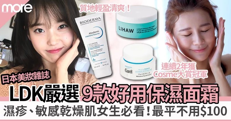 日本美容雜誌《LDK the beauty》最近早前實測市面上12款保濕面霜,嚴選出9款高評分好用保濕面霜,包括港人常見開架品牌,如Curél、肌研hada labo、Bioderma等。這9款面霜無論保濕力、清爽、黏笠程度、護膚和無刺激等成分都得到專家實測保證,大家可以放心選購!而且最平不用$100,性價比相當之高,即刻看看哪款值得買!