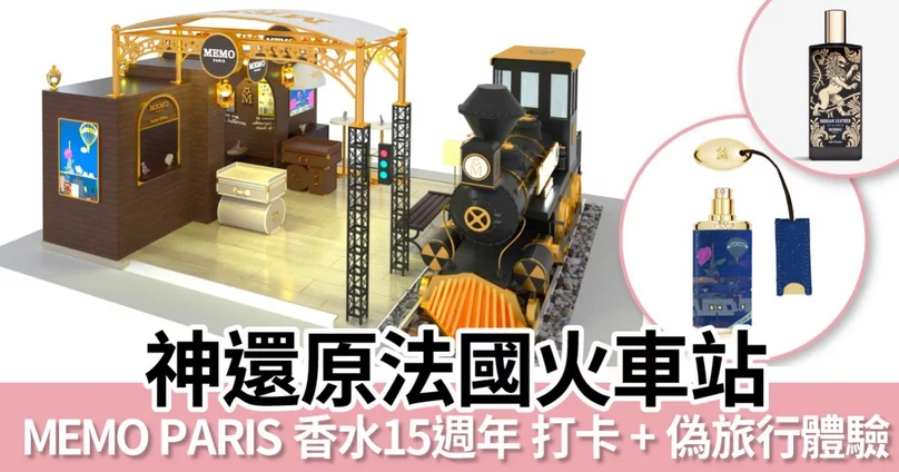 今個月又有打卡好去處!今年為咗慶祝法國奢華香水品牌MEMO PARIS 15週年,由8月12至21日喺尖沙咀海港城港威商場大堂II舉辦「MEMO PARIS 15週年環球香氣之旅」,將法國蒸氣火車站神還原,彷如置身法國,仲可以搭乘MEMO列車,欣賞各國奇妙風景,從MEMO香氣中搜索回憶,安慰一下我地久違去旅行嘅感覺!