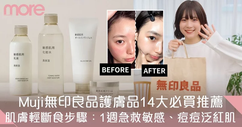 Muji無印良品的敏感肌卸妝潔面油、敏感肌潔面乳等都是適合敏感肌的護膚產品。