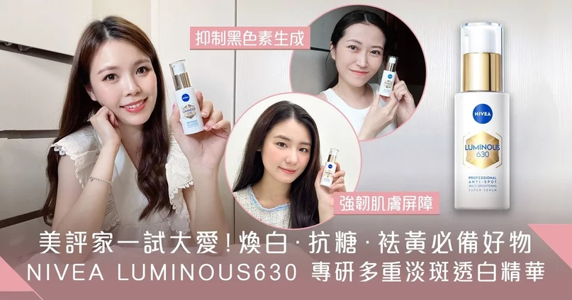 美評家實測大推!NIVEA LUMINOUS630 專研多重淡斑透白精華 3天煥白 7天袪黃 全方位美白抗糖打造淨白完美肌