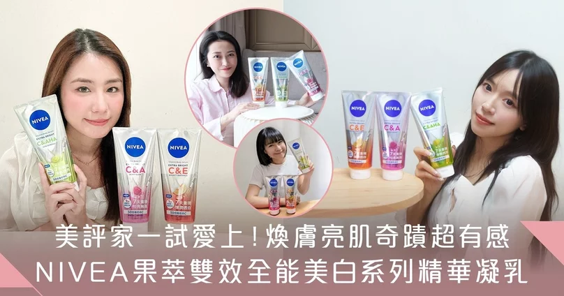 美評家們實測NIVEA全新「果萃雙效全能美白系列」後一試愛上!無論「質地易推度」、「滲透度」、「肌膚平滑度」、「淡斑淡紋度」、「滋潤美白度」各方面測試都獲得極佳成績,即睇她們的真實用後感!