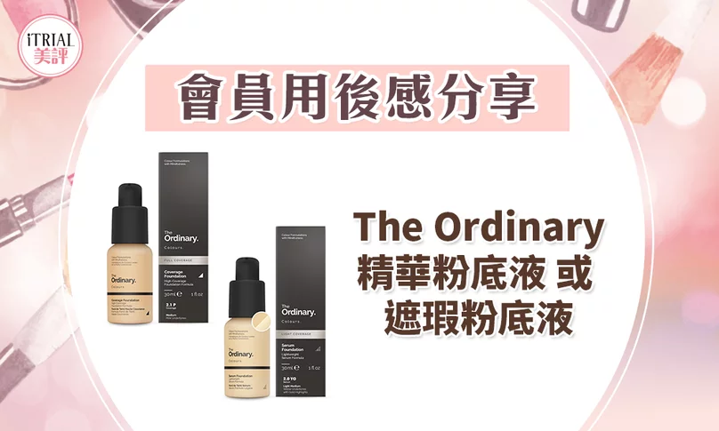 【The Ordinary 粉底液】即看會員用後感心得 iTRIAL美評限定試用活動 護膚保養 SundayMore編輯部 Sep 13 2021 iTRIAL美評於2021年7月與 The Ordinary 合作舉辦了產品試用活動,留言3個或以上的新會員有機會得到 The Ordinary 精華粉底液 或 遮瑕粉底液 乙份 (價值$56-58,名額400名) 。 閱讀全文 現時試用活動已經結束,來看看部分會員的用後感心得吧! 查看更多用家評價心得:iTRIAL會員對 The Ordinary 精華粉底液 Serum Foundation 的感想分享 查看更多用家評價心得:iTRIAL會員對The Ordinary 遮瑕粉底液 Coverage Foundation的感想分享 立即成為iTRIAL會員,一同參與更多免費美妝產品試用活動,親身體驗及分享產品用後感吧! 延伸閱讀: 點擊查看美評家試用報告 The Ordinary 粉底液 | 輕盈啞光自然妝容、經濟實惠粉底液之選 The Ordinary 粉底液 | CP值超高粉底液 遮瑕度高 適合新手 更多會員用後感分享:www.itrial.hk/products/ 本人已詳閱並同意遵守本文列明條款及細則。 請瀏覽(nmg.com.hk/privacy) 閱讀本公司的私隱政策聲明。 本人願意接收新傳媒集團的最新消息及其他宣傳資訊,本人同意新傳媒集團使用本人的個人資料於任何推廣用途。 TagThe Ordinary粉底液 你可能也喜歡 粉底用法教學:5大粉底產品類別:正確用法/順序/步驟 打造持久底妝!SundayMore編輯部10 Nov ISTP性格特質及代表人物|MBTI人格測試中被稱為「鑒賞家」人格SundayMore編輯部6 Dec 2025聖誕美甲30款式推薦!小紅書大熱!冬季雪花雪人可愛gel甲Echo Cheung(SundayMore編輯部)18 Nov 法令紋要如何消除?6大原因+6招改善秘訣 必學1分鐘消除法令紋按摩操SundayMore編輯部10 Nov