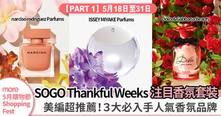 三款品牌的香氛系列都各有特色,立即揀選心水香氛來享受夏日的ME Time時光!各位姊妹於感謝祭期間到銅鑼灣SOGO的香氛專櫃即場購物滿指定金額,可享額外禮品,當然也不要錯過SOGO E-store的各款網上限定經典套裝,即使安在家中都可隨時掃貨!