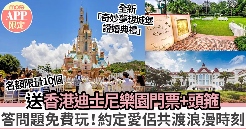【More App限定獨家專享】香港迪士尼樂園度假區首推「奇妙夢想城堡證婚典禮」送香港迪士尼樂園門票+婚禮主題米妮頭箍(名額一共10個)